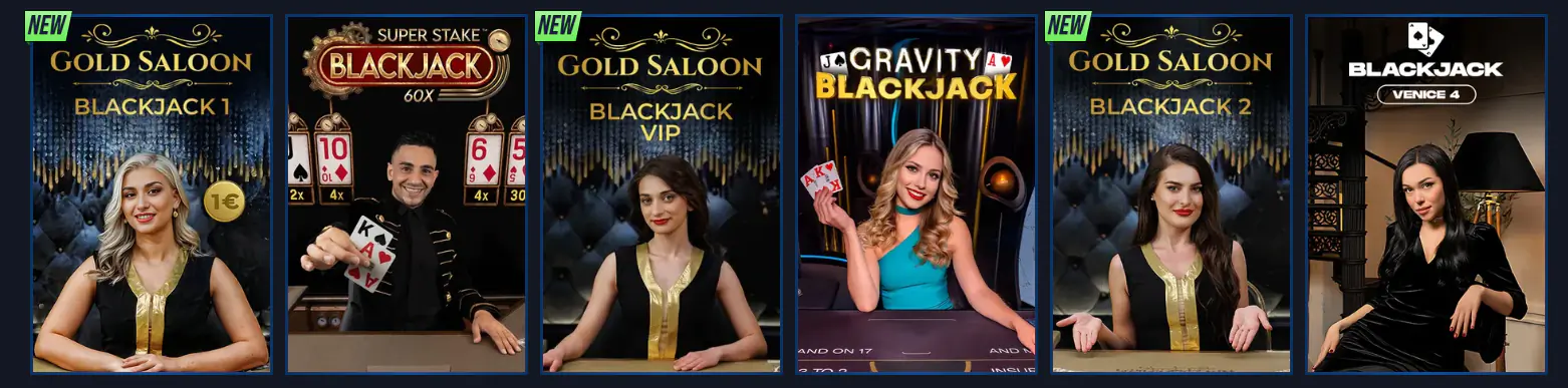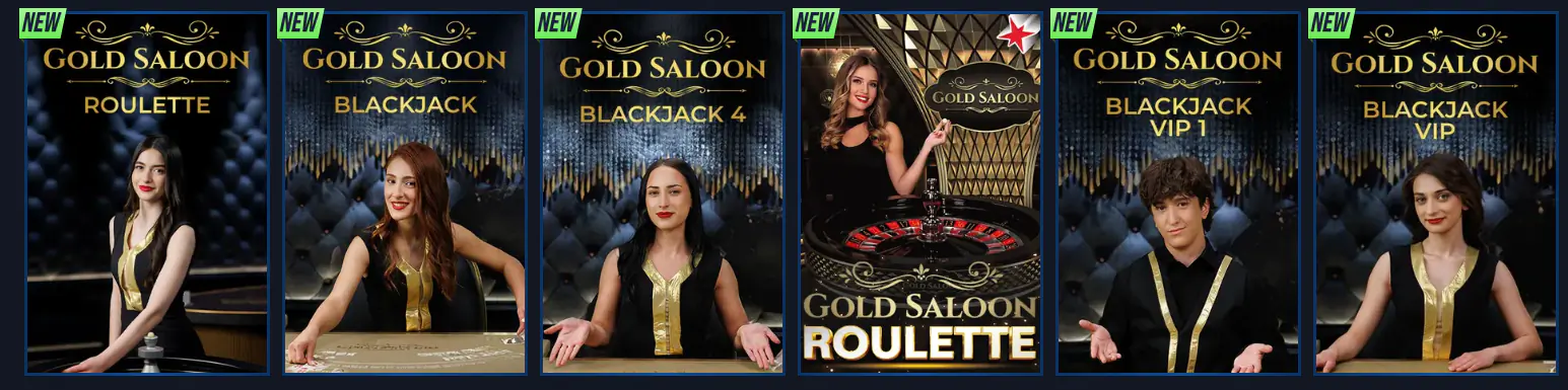 Gold Saloon brings themed table play to life. This section combines classic card games with a themed studio set, live hosts, and special side bets. We pick vegashero games that fit the set and tune the stakes to match the theme. Players who like a lively studio and entertaining hosts often choose Gold Saloon tables.