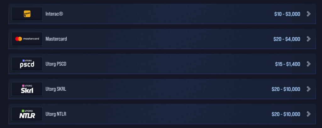 - Select your preferred deposit method from the list of accepted options.